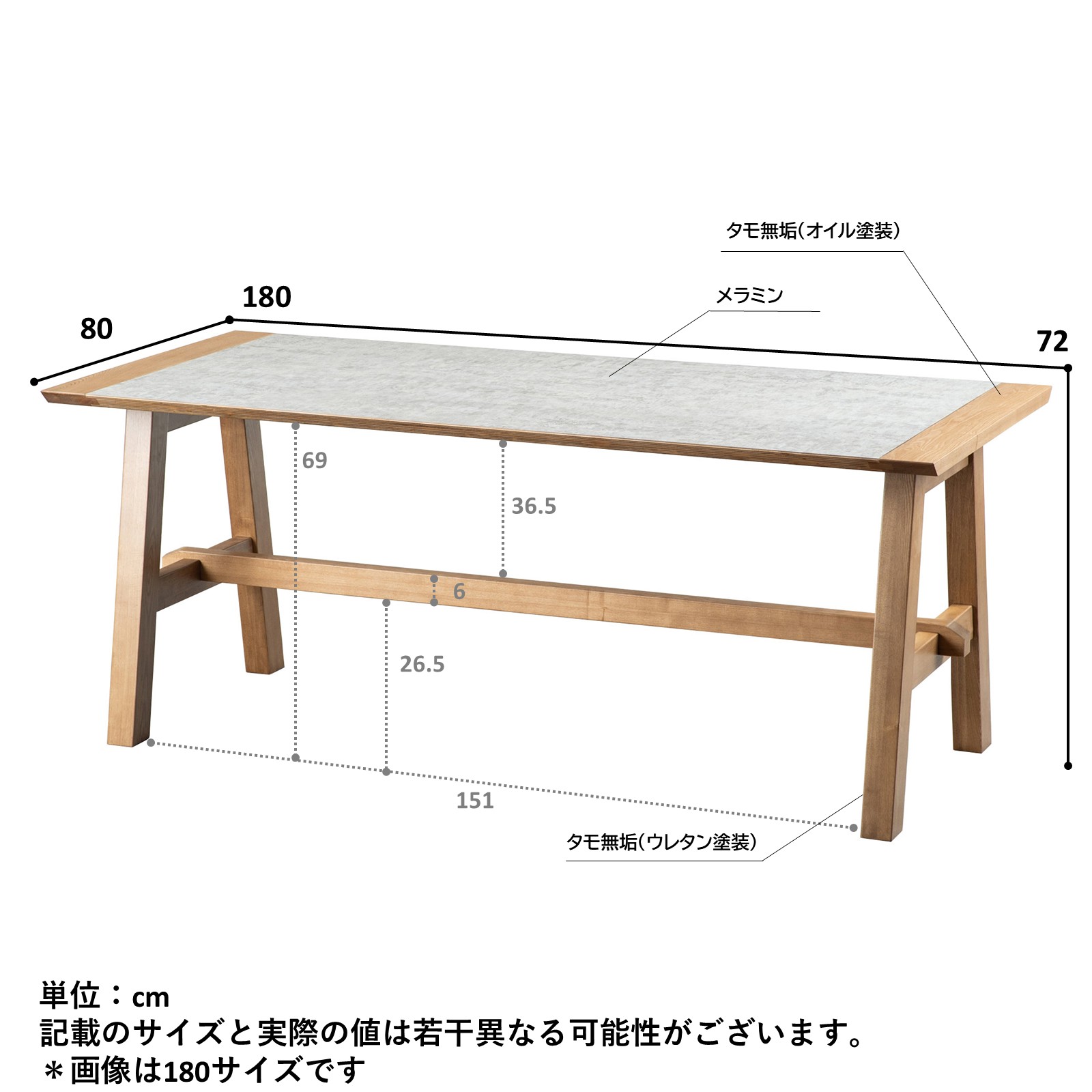 | 塗装(無垢) | 天板:オイル塗装 脚:ウレタン塗装 |